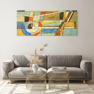 - Abstraktná kompozícia s geometrickými vzormi v teplých odtieňoch. Moderný obraz na skle, ktorý zdôrazňuje štýl a harmóniu každého interiéru.