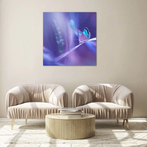 - Fascinujúci obraz zobrazujúci jemného motýľa na pozadí fialového svetla, ktorý vnesie do vášho interiéru eleganciu a harmóniu.