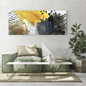 Abstraktný motív, plný energie a dynamiky, vnáša do priestoru jedinečnú atmosféru. Je to dekorácia, ktorá podnecuje predstavivosť a umožňuje vašu vlastnú interpretáciu, čím dodáva interiéru jedinečný charakter.
