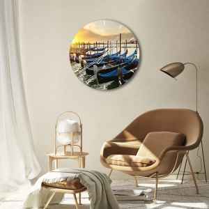 Nástenné hodiny - Pred zhonom a ruchom - Gondoly kotviace na vode pri západe slnka s výhľadom na mesto