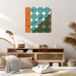 Nástenné hodiny - Geometrické kruhy v odtieňoch zelenej a oranžovej - 30x30cm - Hore a šikmo - Moderná nástenná dekorácia do obývacej izby, kuchyne a spálne ARTTOR