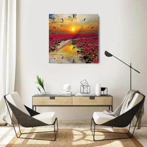 Nástenné hodiny - Pole ružových lotosových kvetov pri západe slnka - 30x30cm - Tajomný život jazera - Moderná nástenná dekorácia do obývacej izby, kuchyne a spálne ARTTOR