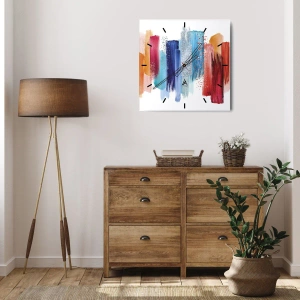 Nástenné hodiny - Abstraktný motív s farebnými tvarmi a textúrami - 30x30cm - Hore a dole - Moderná nástenná dekorácia do obývacej izby, kuchyne a spálne ARTTOR