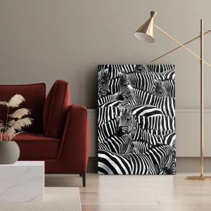 Plátno „Pruhovaný skupinový portrét“ zobrazuje fascinujúci pohľad na skupinu zebier, ktorých čiernobiele vzory vytvárajú fascinujúci vzor. Geometrická harmónia pruhov priťahuje pohľad a prináša eleganciu a symetriu do každého interiéru. Kontrast medzi čiernou a bielou dodáva kompozícii výrazný a umelecký charakter.
