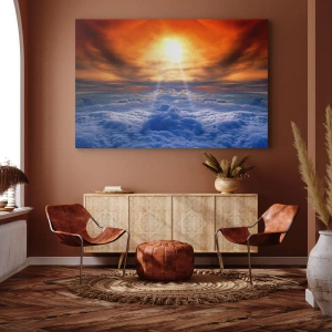 Obraz, vytlačený na prémiovom plátne, sa vyznačuje odolnosťou a vysokou kvalitou tlače. Formát 70x50 cm robí z tohto diela dokonalý dekoratívny prvok v obývačke, spálni alebo kancelárii. Vďaka realistickému vykresleniu detailov, ako je štruktúra oblakov a svetelné lúče, obraz získava hĺbku a trojrozmernosť.