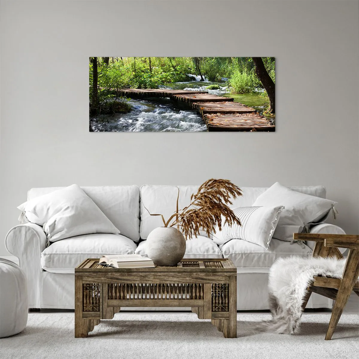 Obraz na plátne - Pri spenenom vodopáde - 100x40 cm