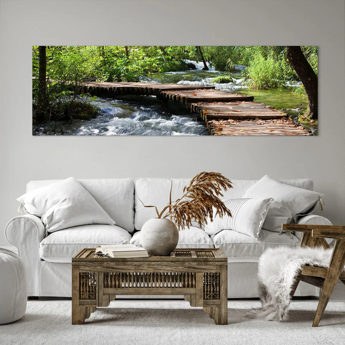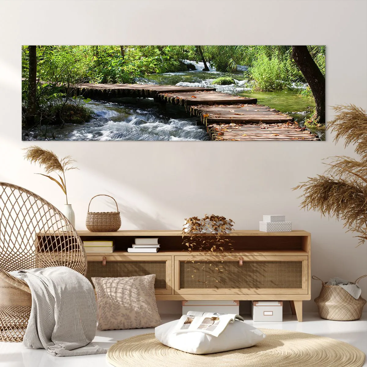 Obraz na plátne - Pri spenenom vodopáde - 160x50 cm
