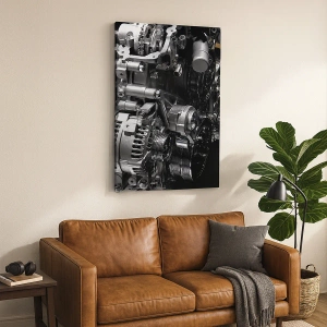 Plátenná tlač je pripravená na zavesenie, čo uľahčuje jej inštaláciu. Vďaka modernému dizajnu a vysoko kvalitnému remeselnému spracovaniu je skvelým darčekom pre nadšencov automobilového priemyslu, strojárstva a technológií. Môže tiež slúžiť ako inšpiratívna dekorácia v dielňach a technických priestoroch.