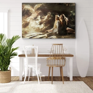Obraz bol vytlačený na prémiovom plátne, čo zaručuje vysokú kvalitu a odolnosť. Jeho rozmery 70x50 cm a horizontálny formát z neho robia perfektnú voľbu pre romantické, umelecké a moderné aranžmány. Každý detail scény bol reprodukovaný s mimoriadnou presnosťou, čím sa zdôrazňuje hĺbka a tajomstvo zobrazeného sveta.