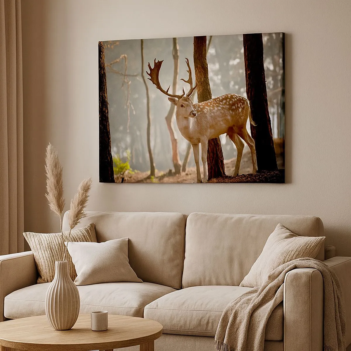 Detailné zobrazenie jeleňa a jemné, prirodzené farby lesa prinášajú do interiéru prvok rafinovanej krásy. Tento motív je ideálny pre interiéry inšpirované prírodou, či už v obývačke, spálni alebo kancelárii, a dodáva teplo a jemné čaro.