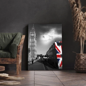 - Tento obraz zobrazuje Big Ben a autobus s britskou vlajkou na čiernobielom pozadí. Je to perfektná voľba pre milovníkov Londýna a klasických dekoratívnych motívov.