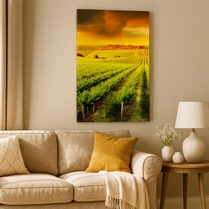 Pod austrálskym slnkom je úžasná tlač na plátno, ktorá zachytáva krásu prírody a čaro vidieckej krajiny. Malebné vinice tiahnuce sa až k horizontu, osvetlené teplými lúčmi slnka, vytvárajú scénu plnú harmónie a pokoja. Každý detail, od rovnomerne usporiadaných radov viniča až po zlaté svetlo, vyžaruje prírodnú krásu a rovnováhu.