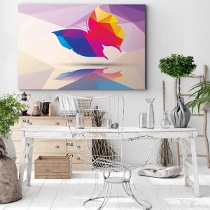 „Motýlia dúha“ je plátno s rozmermi 70x50 cm, ktoré poteší svojím geometrickým vzorom a intenzívnymi farbami. Zobrazuje motýľa, ktorého silueta zložená z abstraktných tvarov vytvára dynamickú a modernú kompozíciu. Živé farby ako ružová, modrá a žltá zdôrazňujú energiu a krásu prírody.