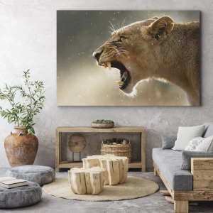 - Pôsobivý portrét revúcej levice zachytený v prirodzenom svetle, zachytávajúci jej silu a charakter. Dokonalý obraz pre milovníkov divokej prírody a expresívneho dekoru.