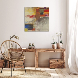 • Obraz zobrazujúci farebnú abstrakciu s geometrickými tvarmi, ideálny do moderných a minimalistických interiérov.