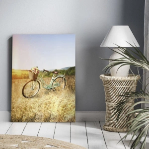 „Zostanem tu ešte chvíľu“ je pôvabný obraz na plátne zobrazujúci retro bicykel s košíkom plným kvetov na pozadí slnečnej lúky. Tento neuveriteľne romantický a jemný motív prináša do interiéru harmóniu a teplo. Toto umelecké dielo prenesie diváka do sveta letných spomienok a pokojných chvíľ.