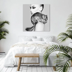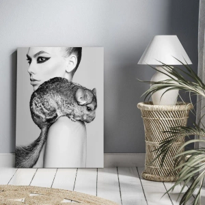 • Tento elegantný obraz zobrazuje štylizovanú ženu s činčilou v čiernobielej kompozícii. Je to perfektná dekorácia do moderného interiéru.