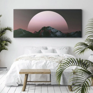 - Táto moderná tlač na plátno zobrazuje geometrické hory na pozadí západu slnka. Perfektná nástenná dekorácia do moderných interiérov.