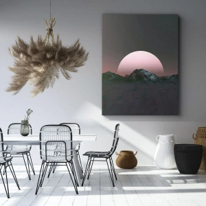 Obraz dokonale kombinuje prvky digitálneho a krajinárskeho umenia a vytvára jedinečnú kompozíciu. Geometrické tvary hôr v kombinácii s atmosférickou oblohou vytvárajú inšpiratívnu scenériu, ktorá sa dokonale hodí k interiérom v minimalistickom, modernom alebo industriálnom štýle.