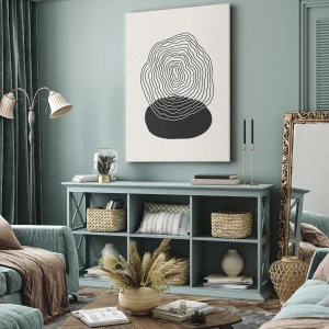 • Moderná tlač na plátno s abstraktným vzorom v čiernobielej farbe. Ideálna do minimalistických a štýlových interiérov, prináša jemnosť a harmóniu.
