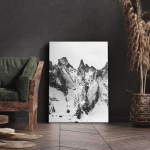- Tento čiernobiely obraz zobrazuje zasnežené horské štíty. Je ideálny do minimalistických a elegantných interiérov a vytvára zimnú atmosféru.