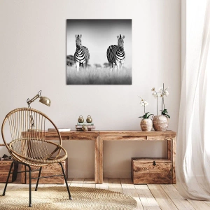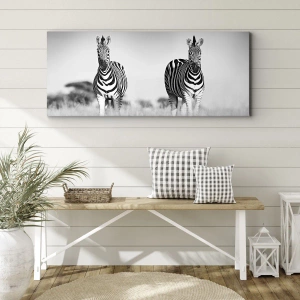 - Obraz na plátne „A predsa je svet čiernobiely“ zobrazuje dve zebry stojace v savane v monochromatickom štýle. Je to perfektná dekorácia do moderných a minimalistických interiérov.