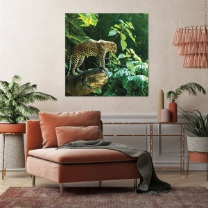 - Táto plátenná tlač s rozmermi 70x50 cm zobrazuje leoparda stojaceho na skale uprostred tropickej vegetácie. Je perfektnou dekoráciou pre milovníkov exotickej prírody a divokej krásy a dodá výrazný akcent každému interiéru.