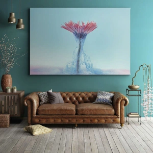 Kompozícia obrazu poteší svojou jednoduchosťou a minimalizmom. Kvet, prezentovaný v jemných odtieňoch ružovej a modrej, symbolizuje sviežosť a eleganciu. Vďaka svojej jedinečnej estetike obraz priťahuje pohľad a inšpiruje a zároveň dodáva interiéru jedinečný charakter.
