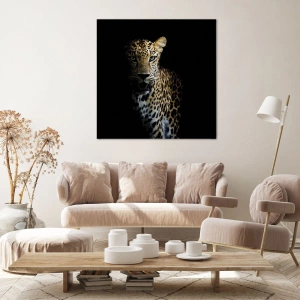 - Obraz zobrazuje leoparda na čiernom pozadí, čím zdôrazňuje jeho eleganciu a dravosť. Intenzívny pohľad a výrazné škvrny dodávajú kompozícii silu a charakter, ideálne pre moderné interiéry.