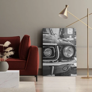 - Obraz zobrazuje čiernobiely záber kapoty klasického auta, pričom zvýrazňuje detaily svetlometov a výrazný dizajn. Je to perfektný doplnok do interiérov automobilových nadšencov a retro nadšencov.