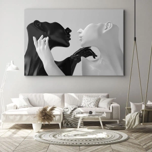 Obraz na plátne - Čiernobiele siluety v dynamickom detailnom zábere - 70x50cm - Príťažlivosť – túžba - Moderná nástenná dekorácia do obývacej izby a spálne ARTTOR