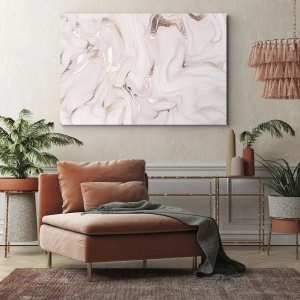 - Tento jemný obraz na plátne s rozmermi 70x50 cm zobrazuje abstrakciu v odtieňoch ružovej a zlatej. Je perfektným doplnkom do každého interiéru a prináša eleganciu a harmóniu.