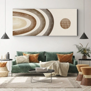 - Abstraktný planetárny motív v geometrických tvaroch a odtieňoch hnedej. Ideálny do moderných, minimalistických interiérov.