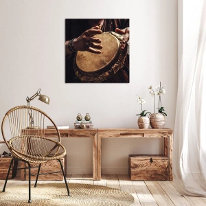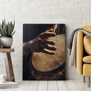 - Tento obraz zobrazuje ruky hrajúce na tradičný bubon djembe. Táto dynamická kompozícia vyžaruje harmóniu a inšpiráciu, ideálna pre moderné a umelecké interiéry.