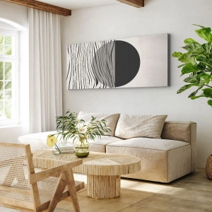 Motív abstraktných línií a geometrie symbolizuje harmóniu, poriadok a modernosť. Obraz „Polovičná kompozícia“ sa perfektne hodí do industriálnych, škandinávskych alebo minimalistických interiérov. Jeho všestrannosť a jemnosť z neho robia perfektný ústredný bod alebo decentné pozadie.