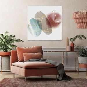 Pastelové odtiene v kombinácii s jemnými zlatými líniami prinášajú do interiéru pokoj a teplo. Obraz je ideálny pre minimalistické, moderné priestory a pre tých, ktorí si cenia jemné umelecké akcenty. Toto dielo je ideálne do obývacích izieb, spální a kancelárií, pretože im prináša harmóniu a štýl.