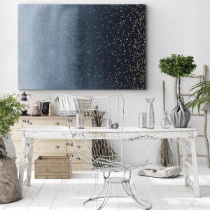 • Moderný obraz s modrými prechodmi a zlatými akcentmi. Minimalistický štýl prináša do interiéru harmóniu a jemnosť. Ideálna voľba pre moderné a štýlové priestory.