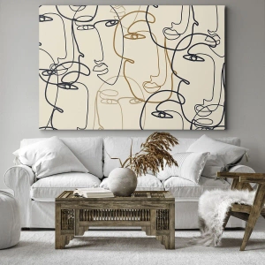 Nástenné umenie - Viacnásobný portrét - Minimalistické tváre v štýle linkovej grafiky na svetlom pozadí