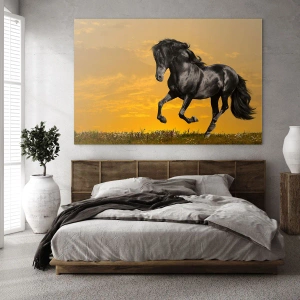 Téma obrazu vyžaruje energiu a inšpiráciu a pripomína nám krásu a silu divokej prírody. Čierny kôň symbolizuje slobodu a vášeň a kombinácia teplých farieb zapadajúceho slnka s dynamickým držaním tela zvieraťa vytvára neuveriteľne atmosférický vizuálny efekt.