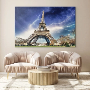Nástenné umenie - Pán búrok - Eiffelova veža obklopená bleskami v zamračený deň