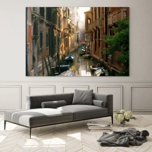 Nástenná maľba - V benátskej uličke - Benátsky kanál s loďkami obklopenými historickými činžovnými domami