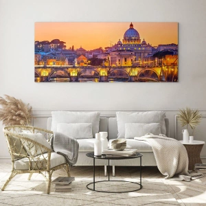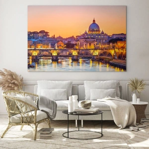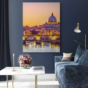 Panoráma Ríma na tomto obraze zachytáva nielen krásu mesta, ale aj jeho nadčasový charakter. Teplé farby západu slnka vytvárajú mimoriadnu atmosféru a harmónia svetla a tieňa zdôrazňuje jedinečnú náladu daného okamihu. Tento pohľad sa môže stať zdrojom každodennej inšpirácie a relaxácie.