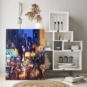 Téma mesta v noci symbolizuje modernosť, kreativitu a neustály pohyb, vďaka čomu je tento obraz ideálnou voľbou pre interiéry v modernom a industriálnom štýle. Táto dekorácia bude vyzerať skvele v obývačke, kancelárii alebo verejnom priestore a navodí atmosféru energie a inšpirácie.