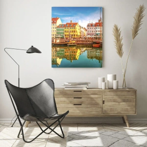 Nástenný obraz - Pri vode hladké ako zrkadlo - Farebné domy pri kanáli s odrazom vo vode