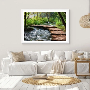 Plagát v bielom ráme - Pri spenenom vodopáde - 61x91 cm