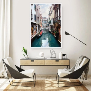 Plagát - Benátska krajina s gondolou a mostíkom - 50x40 cm