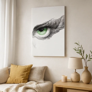 - Obraz zobrazuje umelecké oko so zelenou dúhovkou a jemnými kresebnými detailmi, čím prináša do interiérov štýl a eleganciu.