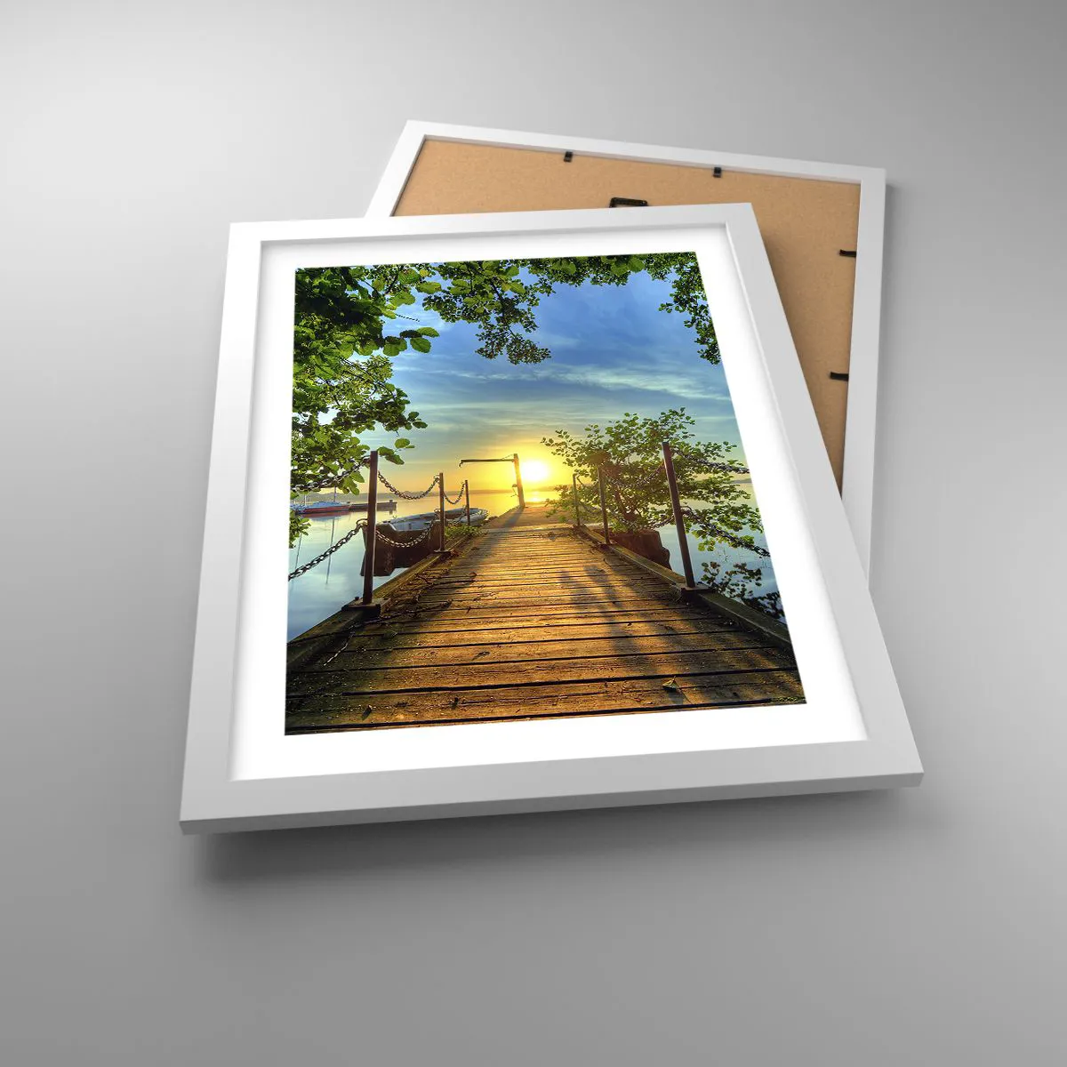 Plagát v bielom ráme - Západ pri vode - 30x40 cm