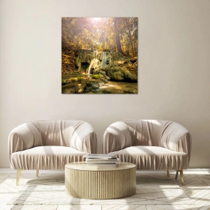 Obraz na skle - Lesný vodopád v zeleni - 50x50 cm