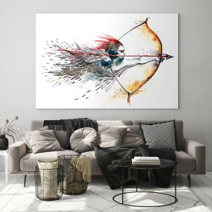 - Umelecká kompozícia zobrazujúca lukostrelca v dynamickom, expresívnom prostredí, vykreslená akvarelom. Jedinečný dekoratívny kus, ktorý spája pohyb a silu.